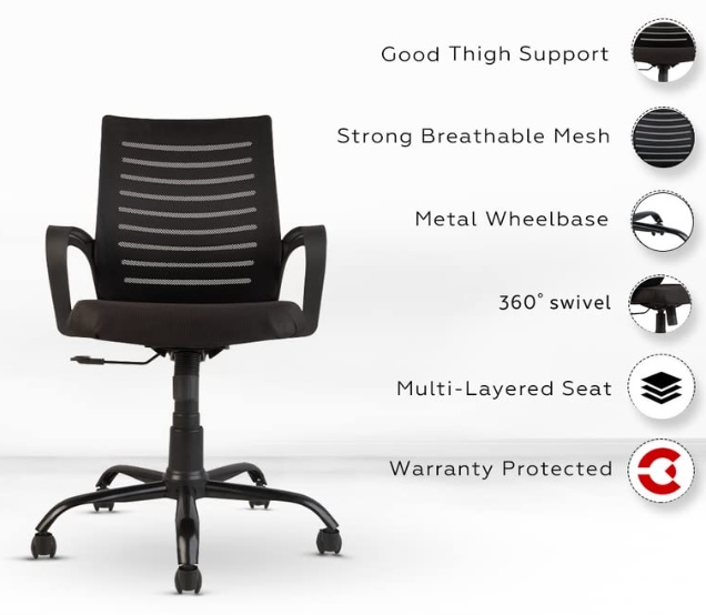Be the first to review “Trendeer  Mesh Mid-Back Ergonomic Office Chair/Study Chair/Revolving Chair/Computer Chair for Work from Home Metal Base Height Adjustable Chair [Black]” Cancel reply